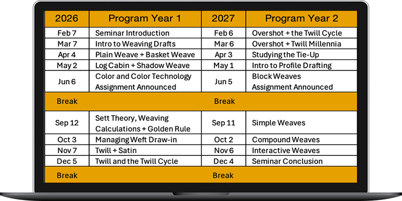 New and Occasional Weavers Online Seminar Calendar 2026-2027
